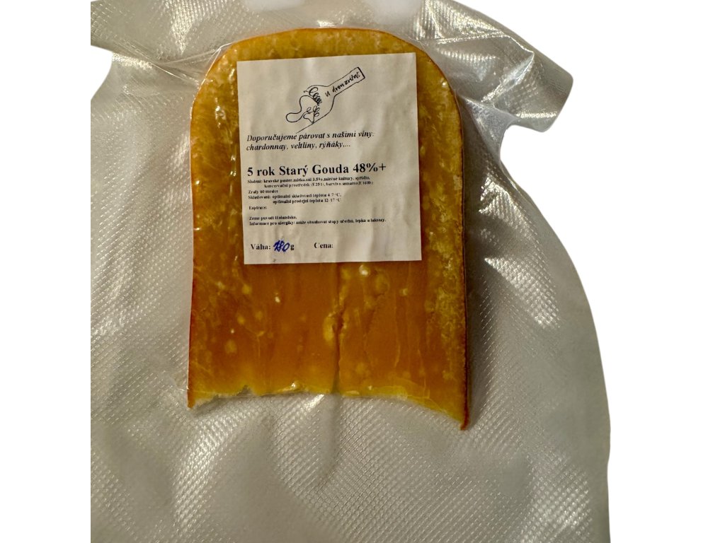 Složitá chuť. Mladý Gouda je jemný a mléčný. Ale 5 let starý Gouda? To je symfonie chutí: karamelové tóny, lehká slanost, ořechové nuance, pikantnost, která vás mile překvapí.